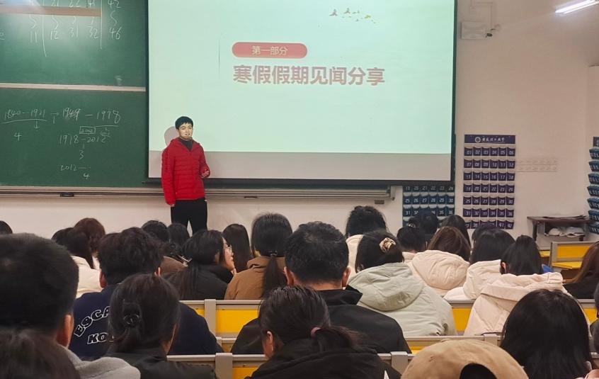 开学以来,学院辅导员以线上线下相结合的方式分年级专业召开主题班会,内容涵盖学风建设、诚信应考、校园安全教育、反诈教育、疫情防控、国防教育与征兵宣传等多个方面。2021级辅导员孙尚,以寒假期间爆火的电影《流浪地球》和《满江红》为切入点,紧密联系时事,鼓励学生在新学期不惧困难、努力学习,书写新的精彩。